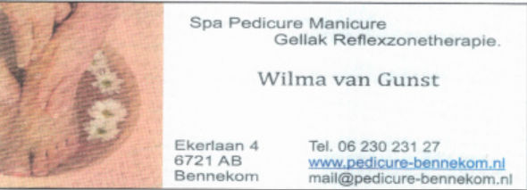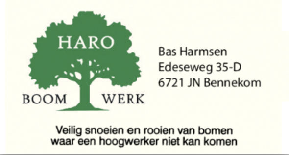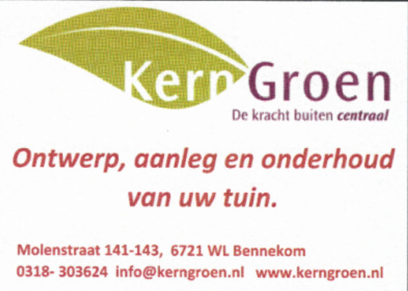 Bedankt: Kerngroen, De Bloemenmand, Pedicure Bennekom, RD tuinen, Kardoen, Hartman, Geels, Haro Boomwerken, Hans Rozeboom, Kwekerij Dependens, Jilles Baggerman Makelaardij, Maupertuus Bed en Breakfast